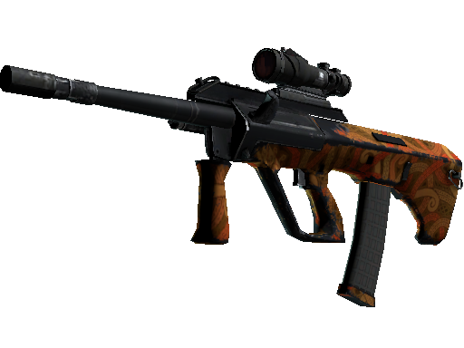 Powerful and accurate, the AUG scoped assault rifle compensates for its long reload times with low spread and a high rate of fire. An orange pattern depicting Jörmungandr, the World Serpent, has been applied.