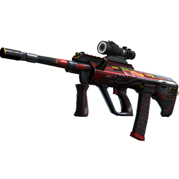 Powerful and accurate, the AUG scoped assault rifle compensates for its long reload times with low spread and a high rate of fire. It has been custom designed by renowned artist Syd Mead.