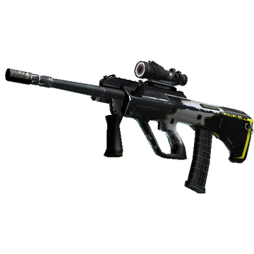 Powerful and accurate, the AUG scoped assault rifle compensates for its long reload times with low spread and a high rate of fire. It has been custom painted with a robotics inspired pattern.