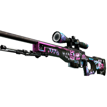 High risk and high reward, the infamous AWP is recognizable by its signature report and one-shot, one-kill policy. It has been custom painted with pink, blue, and purple drawings atop a black base.