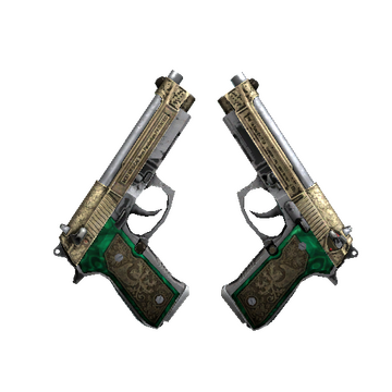 Firing two large-mag Berettas at once will lower accuracy and increase load times. On the bright side, you’ll get to fire two large-mag Berettas at once. Between the green dyed pearl handled grips, gryphon side plates, and laser etched slide; these pistols redefine elegance.