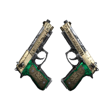 Firing two large-mag Berettas at once will lower accuracy and increase load times. On the bright side, you’ll get to fire two large-mag Berettas at once. Between the green dyed pearl handled grips, gryphon side plates, and laser etched slide; these pistols redefine elegance.